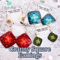 🌸Granny Square Earrings — Crochet-Style Machine Embroidery Design 🌈