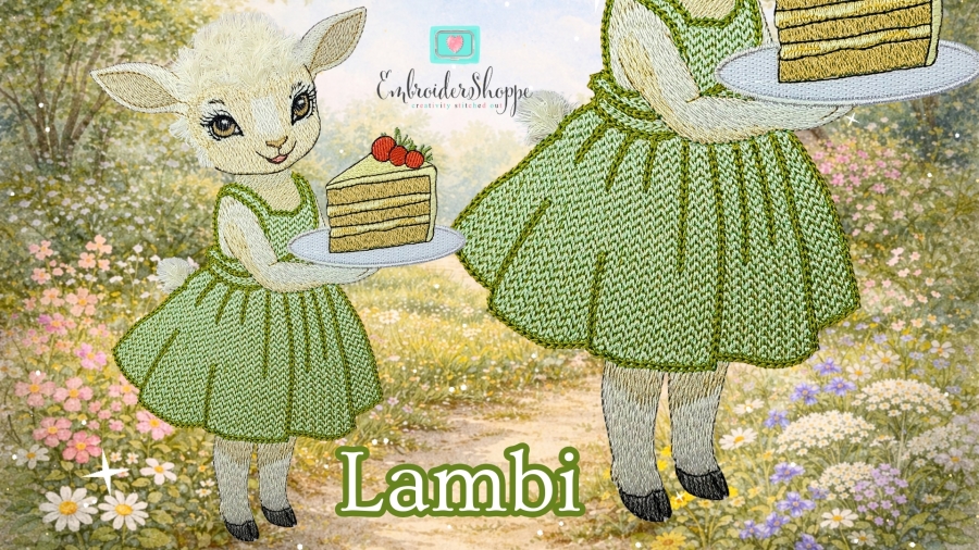 Lambi proves that heirloom beauty can live beautifully in a smaller hoop. Her calming presence, layered textures, and vintage styling make her perfect for heartfelt gifts, nursery décor, framed pieces, and collectible embroidery art. Despite her refined appearance, the stitch-out is smooth, gentle, and wonderfully rewarding.