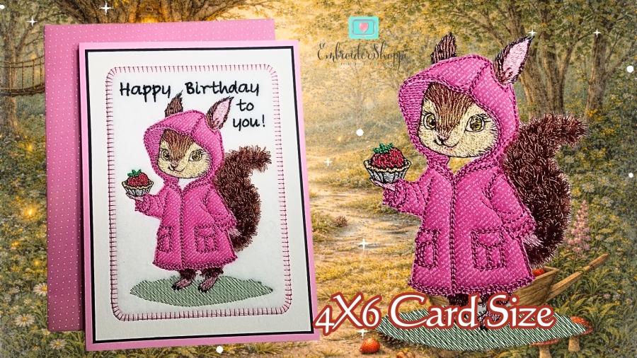 Raina proves that big personality can live beautifully in a smaller hoop. Her woodland sweetness, layered textures, and dimensional raincoat make her perfect for heartfelt gifts, nursery décor, storybook projects, and collectible embroidery art. Despite her detailed appearance, the stitch-out is relaxing, fun, and wonderfully rewarding.