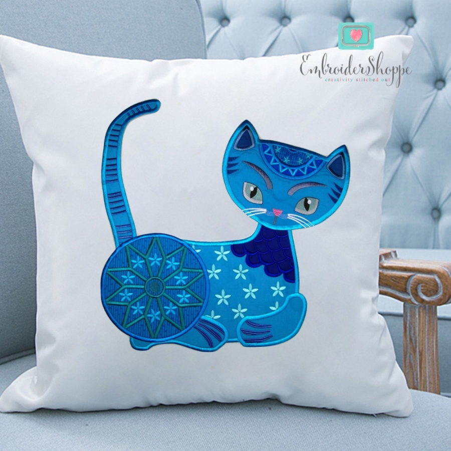 We proudly present this beauty for the 9" x 14" hoop. The great news is that we combined a couple of simple techniques to embroider the cats in two or three parts in 2 or 3 different hoops without multi-hooping. The main body part is stitched out on a base fabric in a 9"x 14" hoop the other parts are being stitched out on organza and soluble stabilizer which will give you a super thin applique and then ironed on to the body with a hot iron without steam. Nobody will be able to tell the difference between the flat embroidery and the applique.