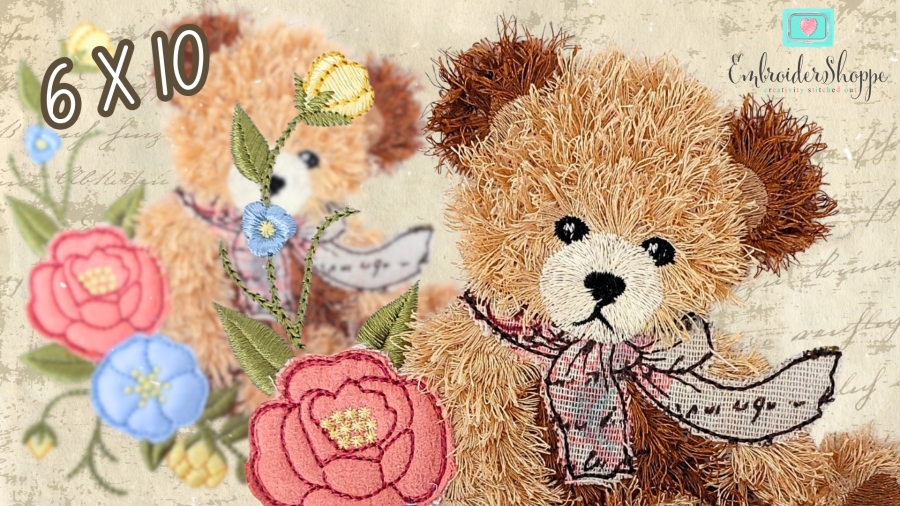 🧸 Vintage Scruffy Bear – 6x10 Hoop Fringed Embroidery Design 🌼