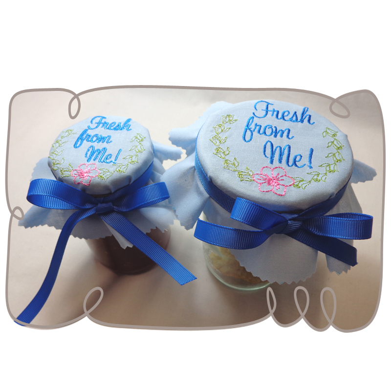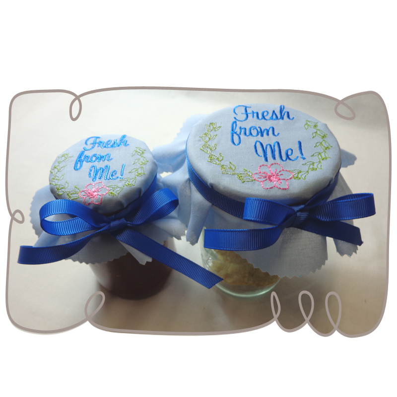 A Special handmade gift from the heart is more worth than money can buy. Use these very cute and versatile jar lid covers to create something special and unique for a loved one. You can give anything in a bottle, from preserves, pickles, salsa, relish or a few decadent Hersey's kisses if you want. For each design you will receive 2 design files. The 2.75" diameter for the regular mouth Mason Jar and the 3 3/8" diameter design for the wide mouth Mason Jar. Easy step-by-step instructions, in-the-hoop, only pinking shears needed to cut out the cover and embellish your jar with a piece of grosgrain ribbon.
