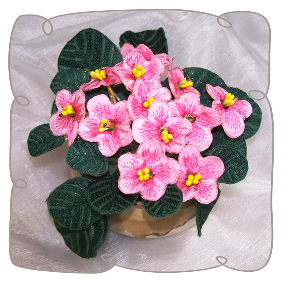 You only have to follow the illustrated step by step instructions to 3D this wonderful pot of African Violets. Your shopping list consists of poly cotton and organza, stamens fishing line and embroidery threads.