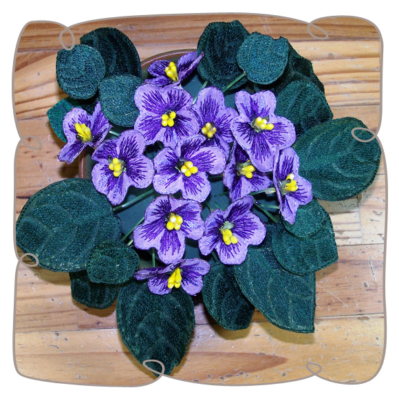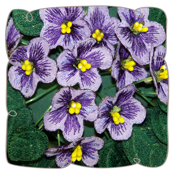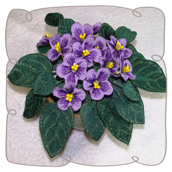 You only have to follow the illustrated step by step instructions to 3D this wonderful pot of African Violets. Your shopping list consists of poly cotton and organza, stamens fishing line and embroidery threads.
